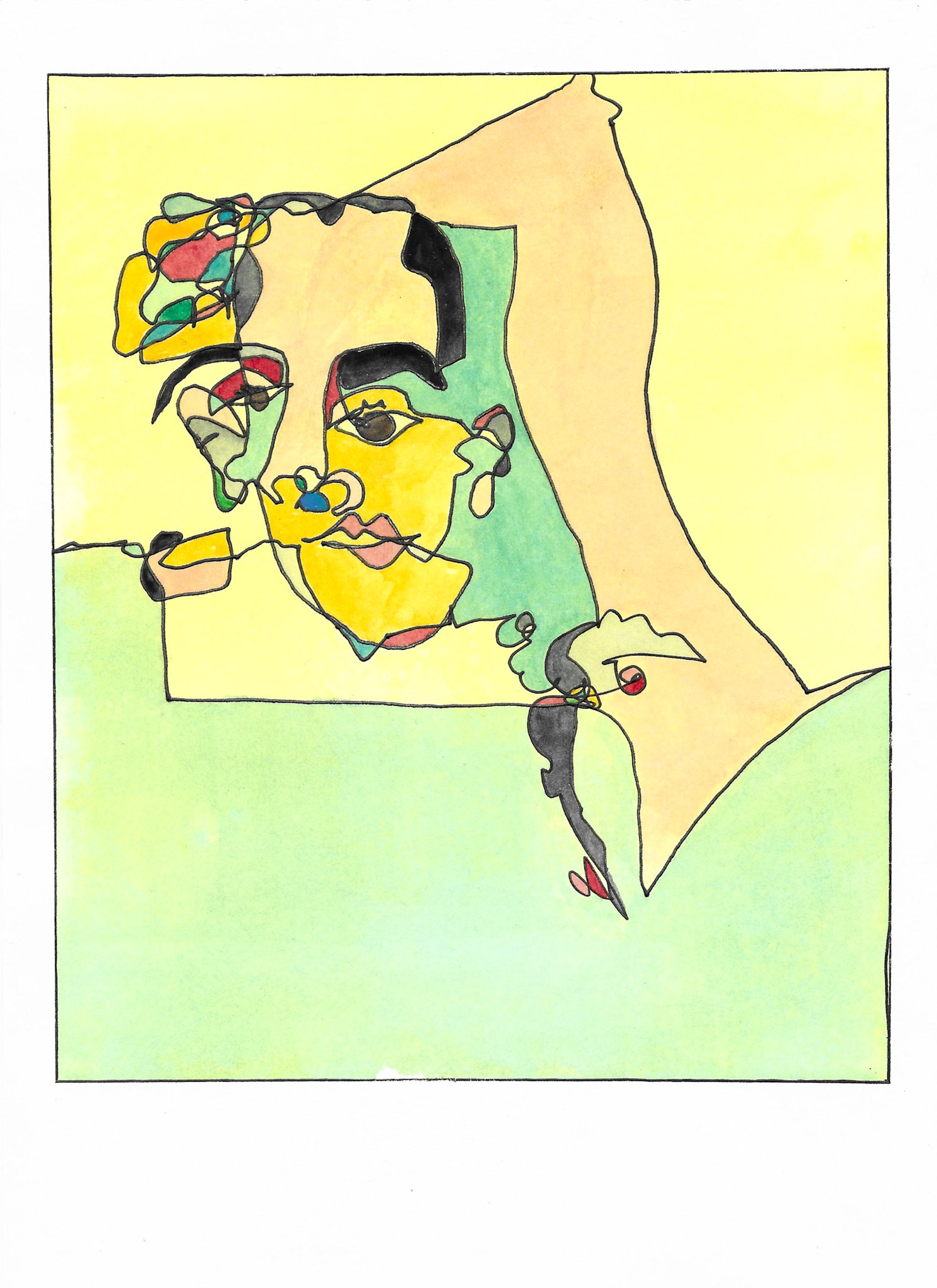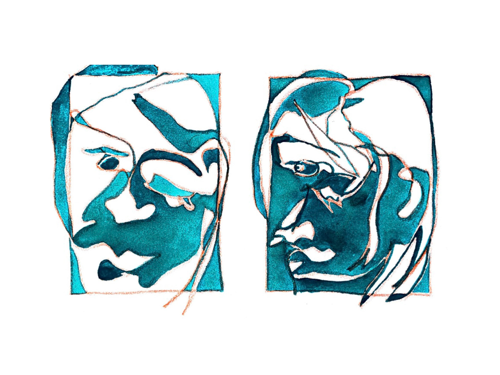 Portraits in watercolor and pen.